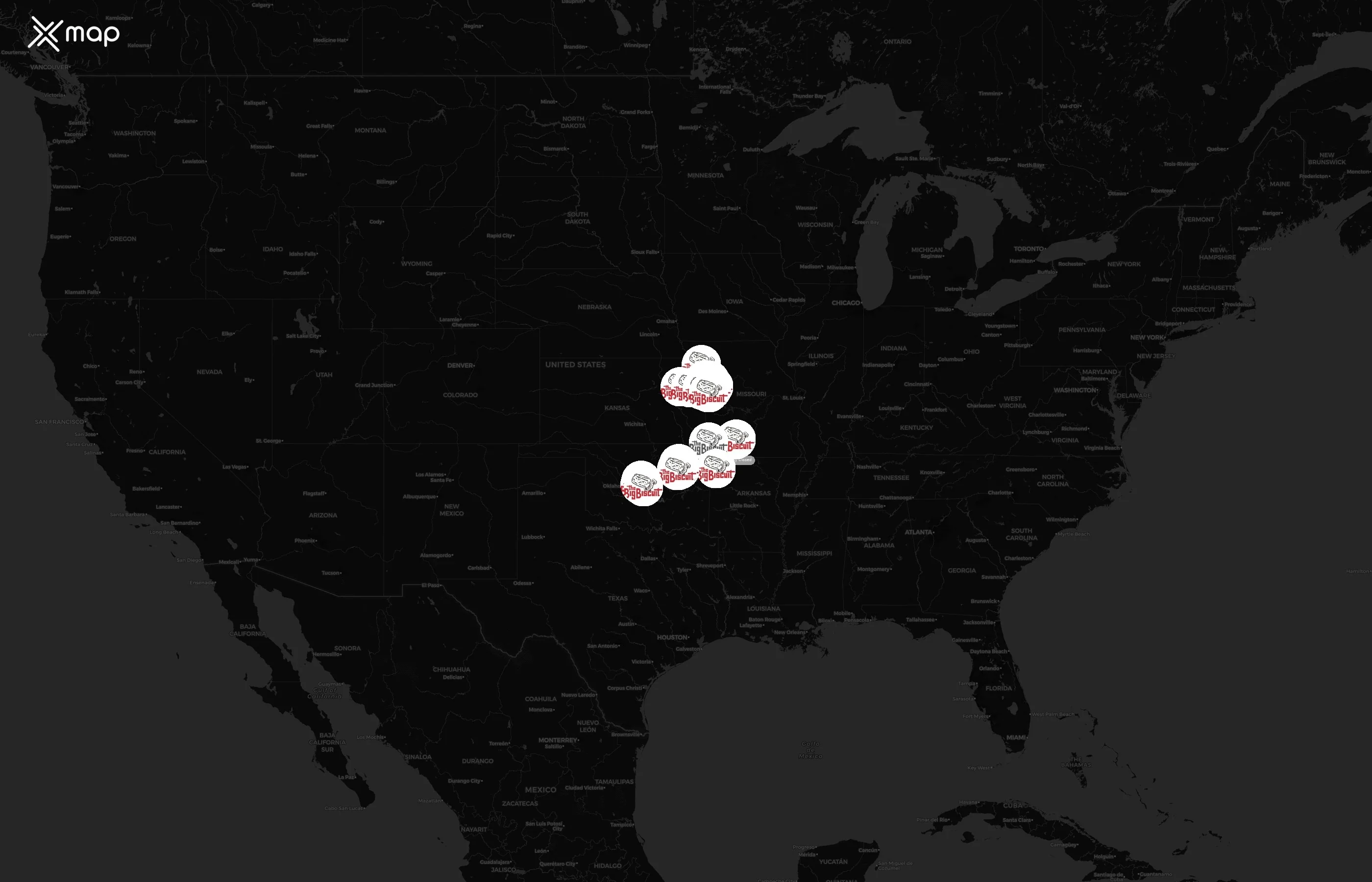 Locations concentrate around major metros such as Johnson, Jackson, Tulsa, Oklahoma, and Clay. The top 10 cities account for 89.7% of U.S. sites.