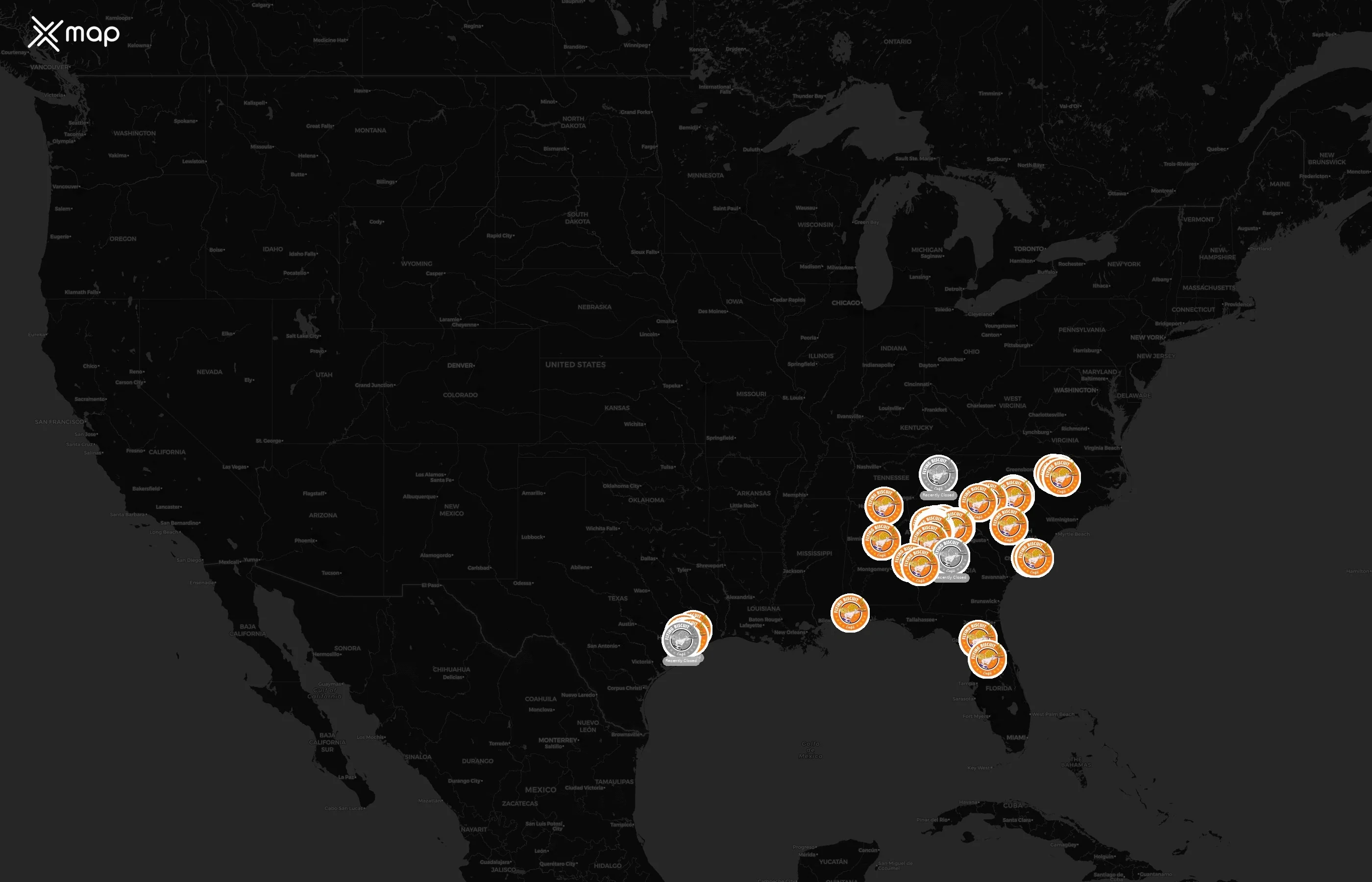 The complete dataset of The Flying Biscuit Cafe locations across the United States of America is available for download, including coordinates, traffic patterns, and operational status.