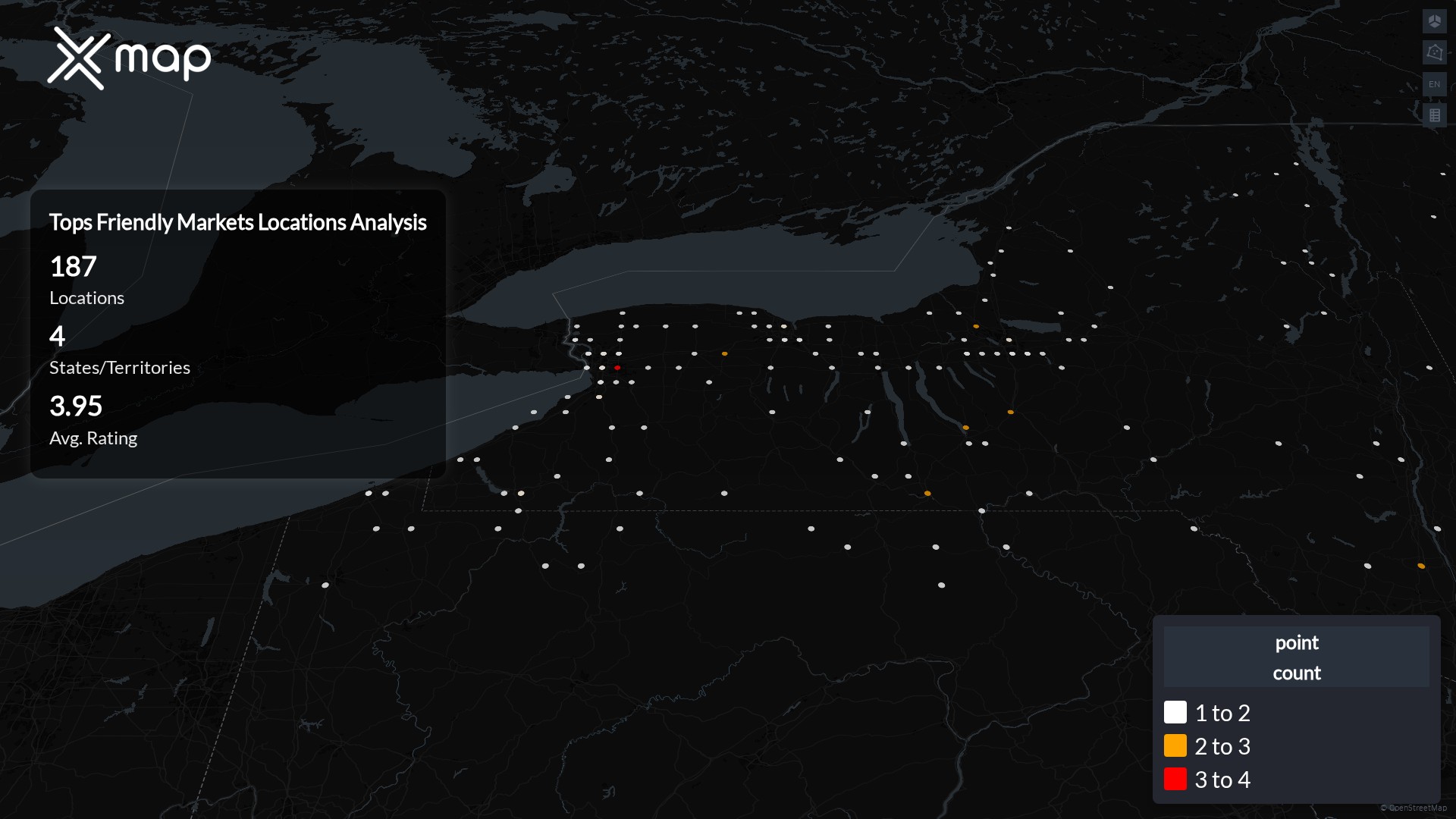 Tops Friendly Markets has 187 United States of America. The key variables shows the most infleuntial aspects for Tops Friendly Markets locations nationwide. This provides a closer look of how Tops Friendly Markets is operating from different prespectives.locations across the
