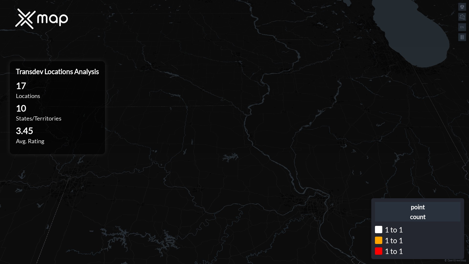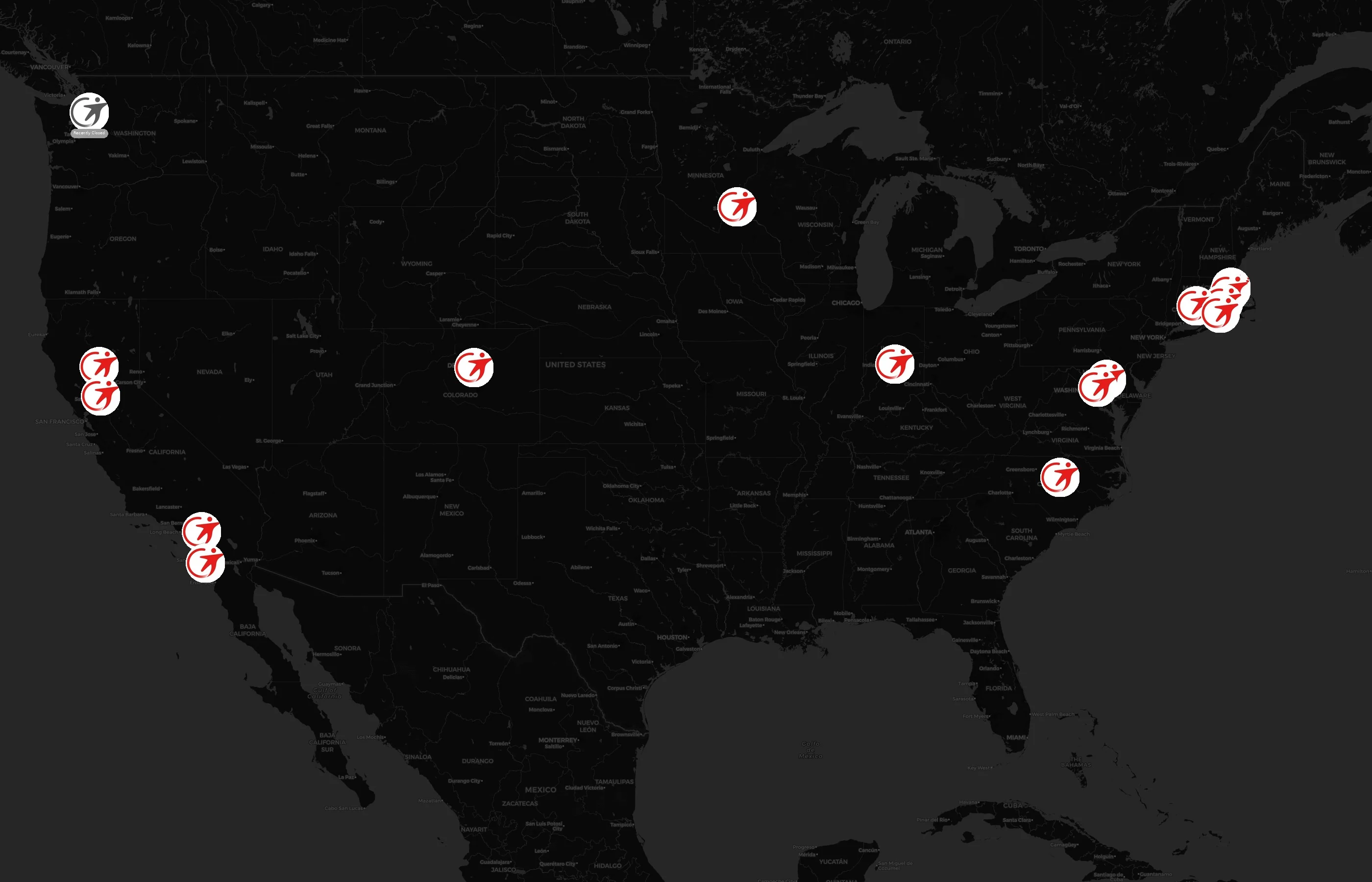 Street-level clusters show corridors where multiple Transdev locations sit within the same neighborhood indicating strong local presence and coherence. Transdev operates a total of 17 nationwide.