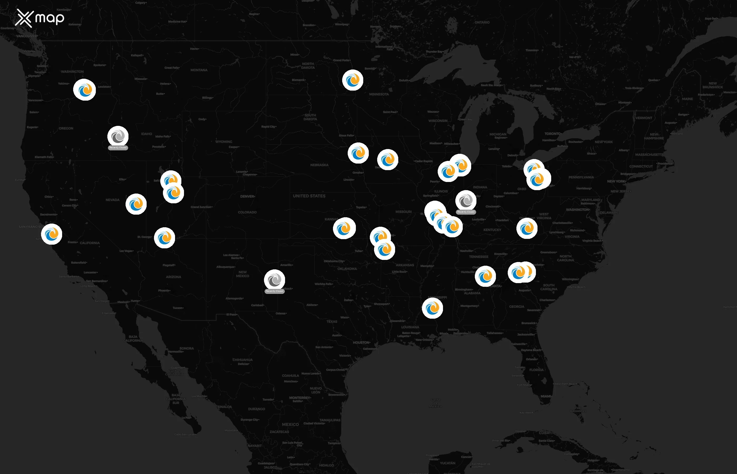 Locations concentrate around major metros such as Benton, Cook, Stark, Madison, and Sedgwick. The top 10 cities account for 47.1% of U.S. sites.