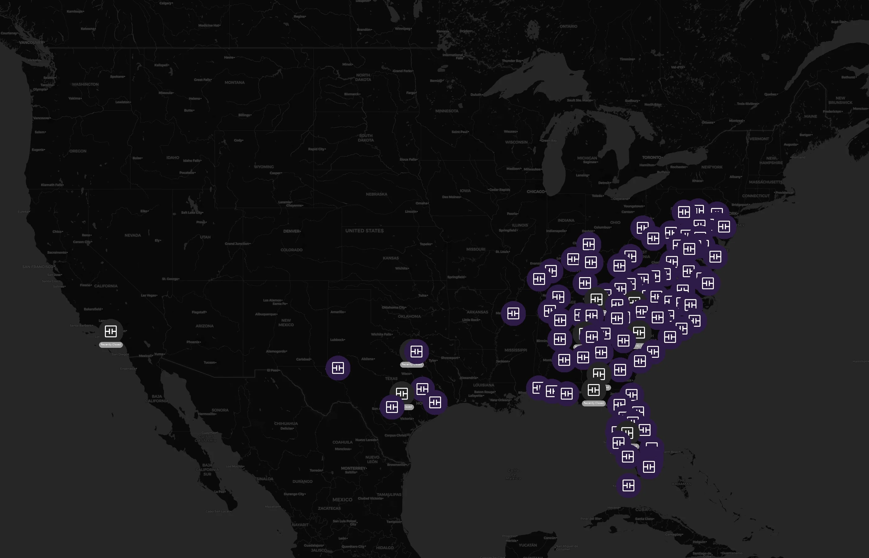 Locations concentrate around major metros such as Miami-Dade, Broward, Fairfax, PalmBeach, and Fulton. The top 10 cities account for 17.2% of U.S. sites.