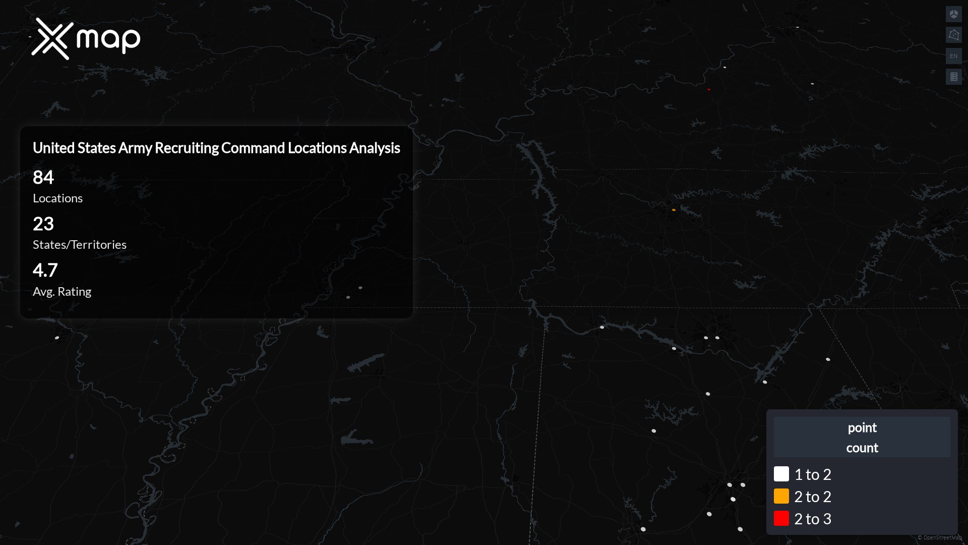 United States Army Recruiting Command has 84 locations across the United States of America. The key variables shows the most infleuntial aspects for United States Army Recruiting Command locations nationwide. This provides a closer look of how United States Army Recruiting Command is operating from different prespectives.