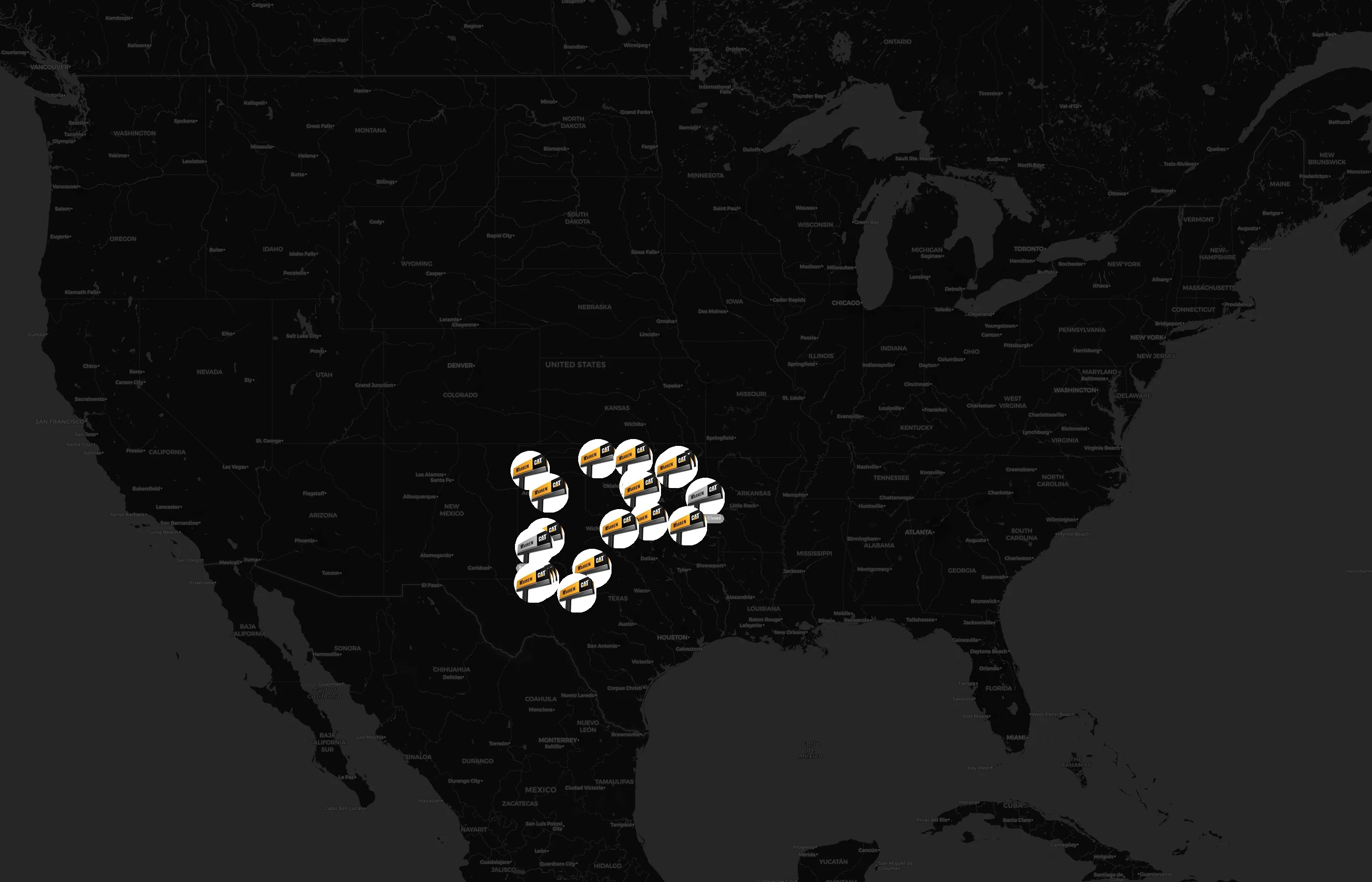 Locations concentrate around major metros such as Lubbock, Tulsa, Midland, Potter, and Oklahoma. The top 10 cities account for 68.2% of U.S. sites.