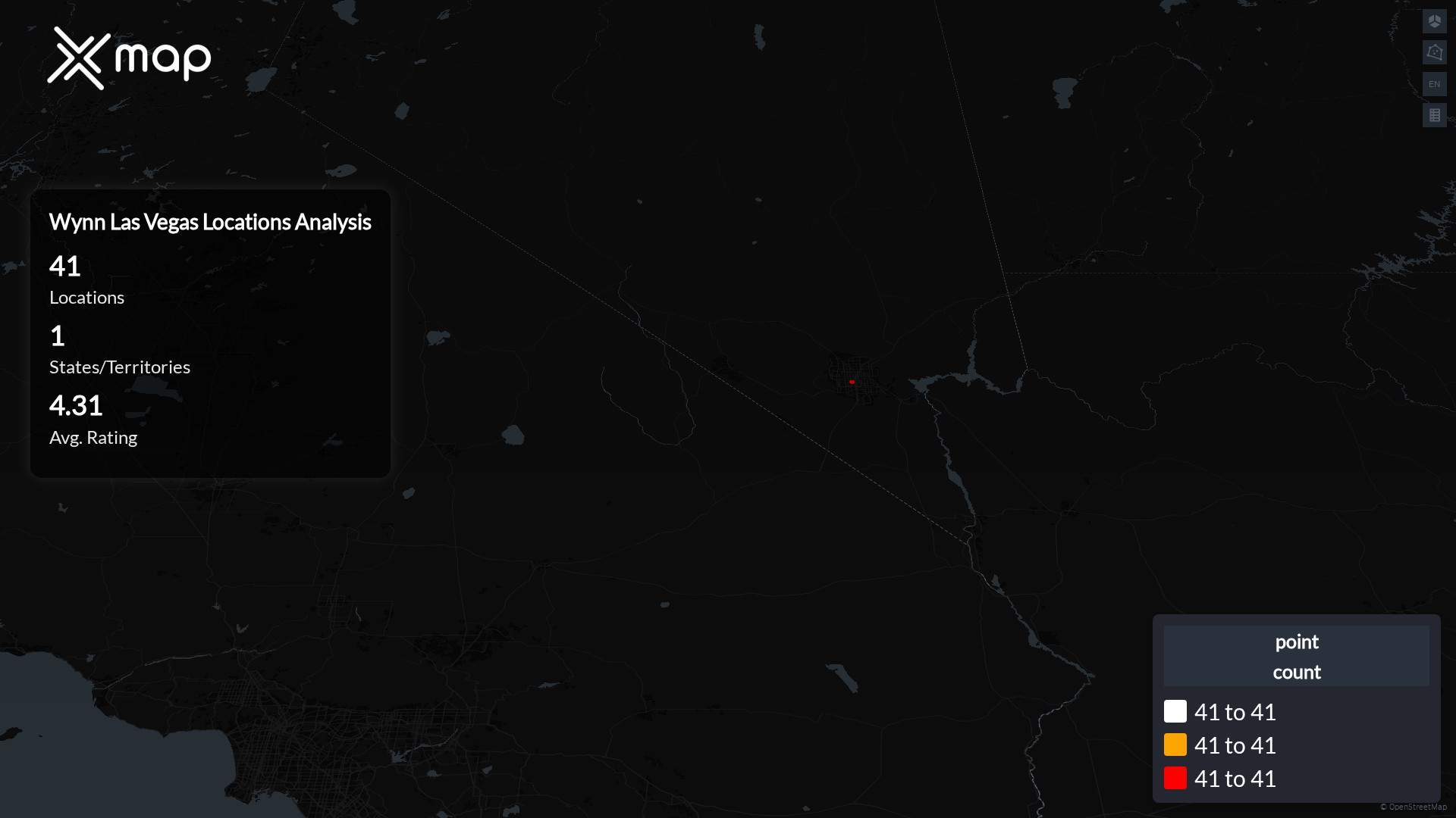 Street-level clusters show corridors where multiple Wynn Las Vegas locations sit within the same neighborhood indicating strong local presence and coherence. Wynn Las Vegas operates a total of 41 nationwide.