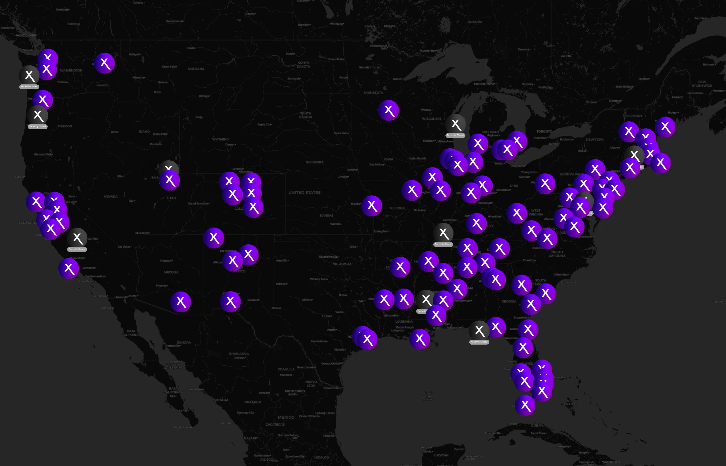 Xfinity POI data enables clear measurement of footprint and demand. Analysts can rank states and cities by location count, compare coverage on a per-capita basis, and use traffic scores and review volumes to spot high-performing markets and under-served pockets. The result is an objective view of saturation, growth opportunities, and performance outliers.