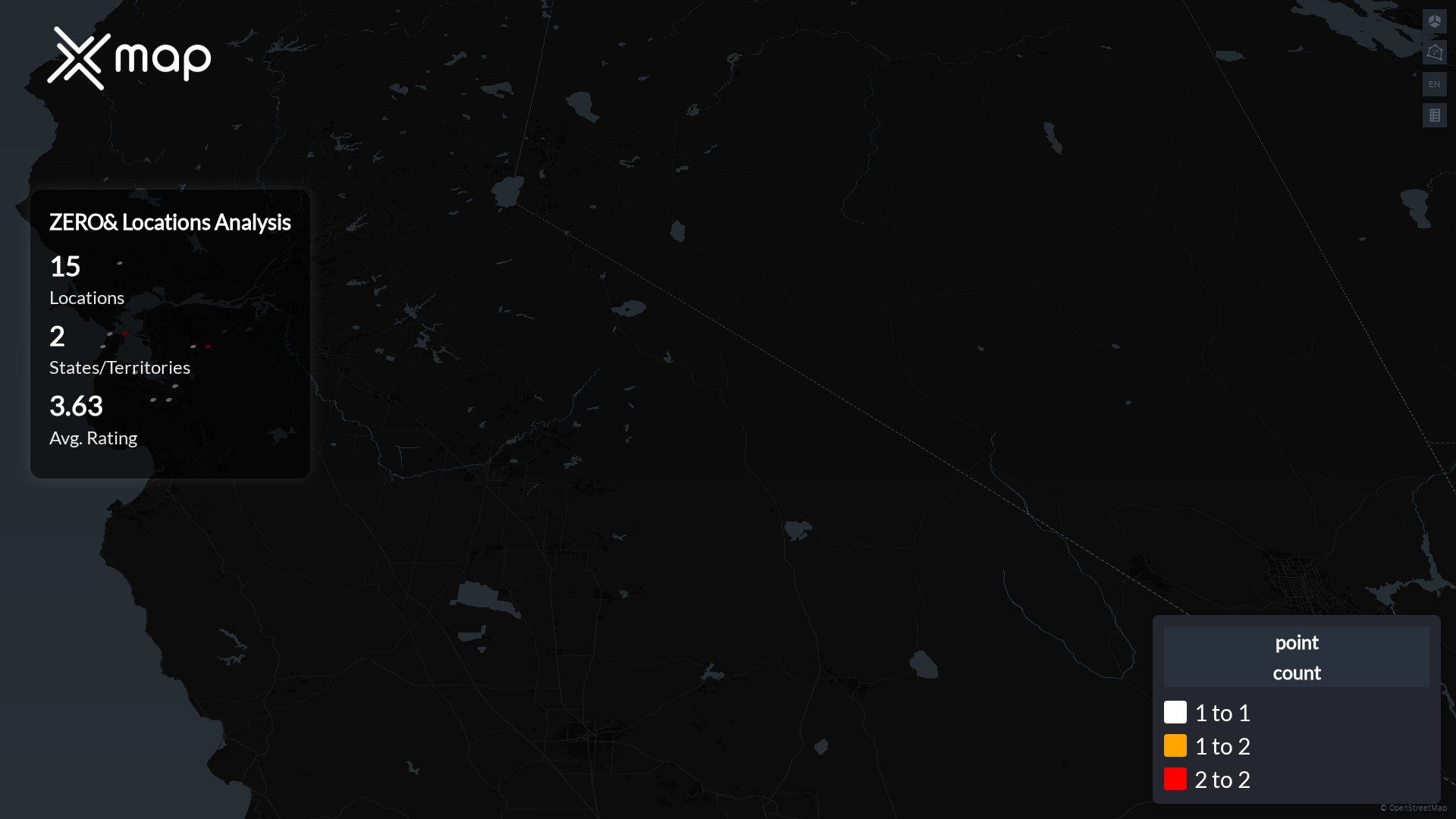 ZERO& POI data enables clear measurement of footprint and demand. Analysts can rank states and cities by location count, compare coverage on a per-capita basis, and use traffic scores and review volumes to spot high-performing markets and under-served pockets. The result is an objective view of saturation, growth opportunities, and performance outliers.