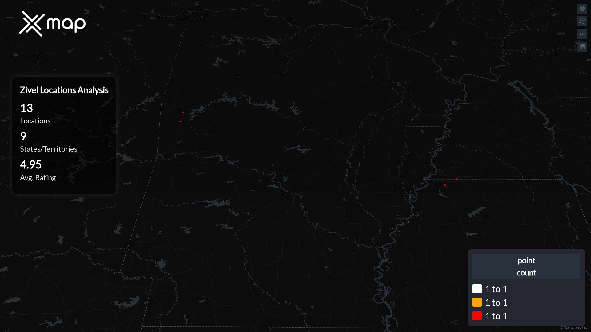 Zivel has 13 locations across the United States of America. The key variables shows the most infleuntial aspects for Zivel locations nationwide. This provides a closer look of how Zivel is operating from different prespectives.