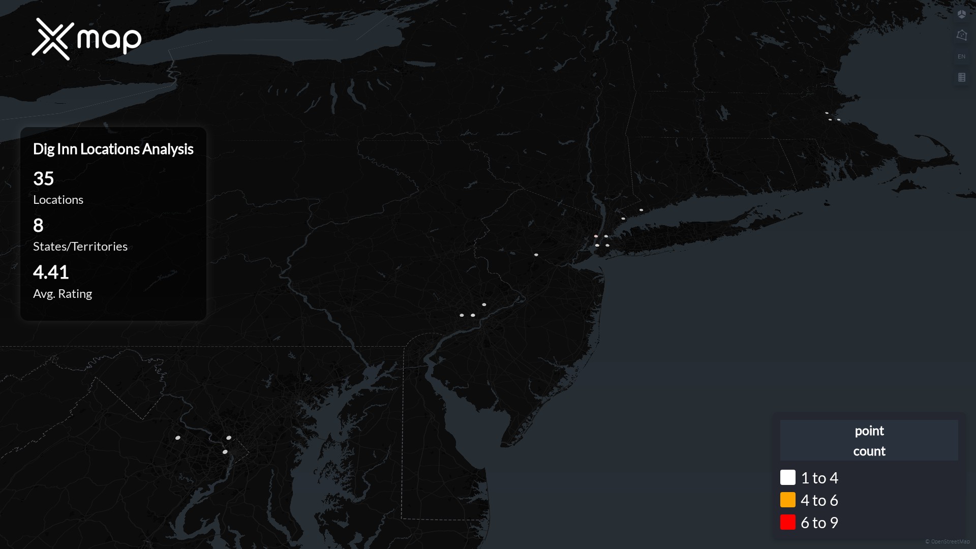 Dig Inn POI data enables clear measurement of footprint and demand. Analysts can rank states and cities by location count, compare coverage on a per-capita basis, and use traffic scores and review volumes to spot high-performing markets and under-served pockets. The result is an objective view of saturation, growth opportunities, and performance outliers.