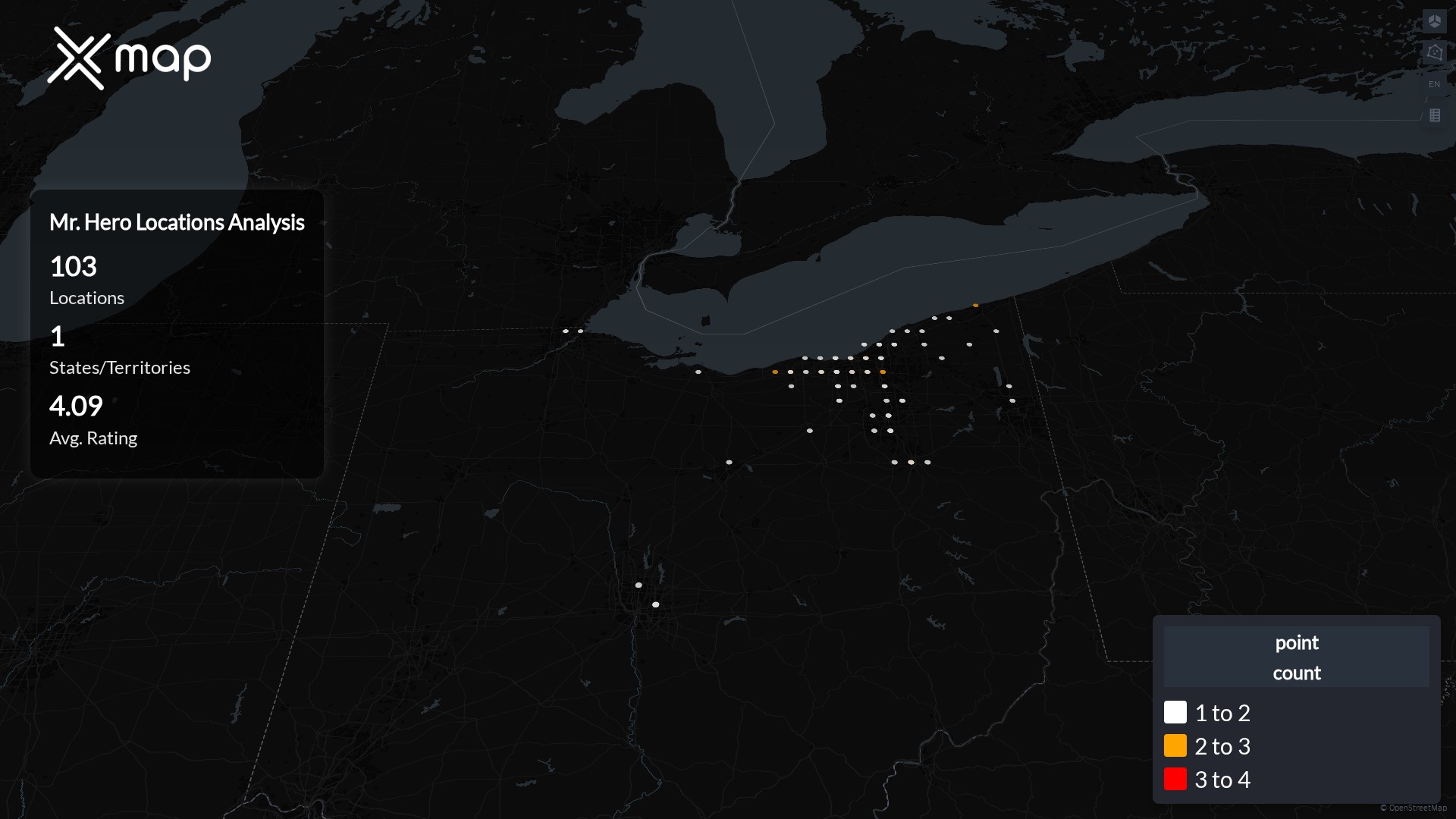 Mr. Hero operates 103 United States of America locations across 1 states. Largest clusters are in Ohio; the top 10 states contain 100.0% of sites. Coverage is thinner in Ohio.