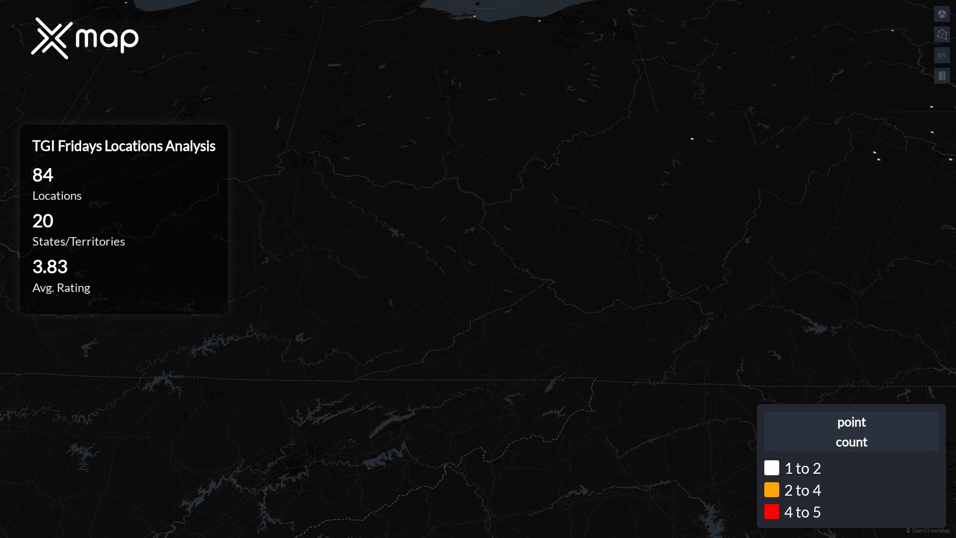 TGI Fridays POI data enables clear measurement of footprint and demand. Analysts can rank states and cities by location count, compare coverage on a per-capita basis, and use traffic scores and review volumes to spot high-performing markets and under-served pockets. The result is an objective view of saturation, growth opportunities, and performance outliers.