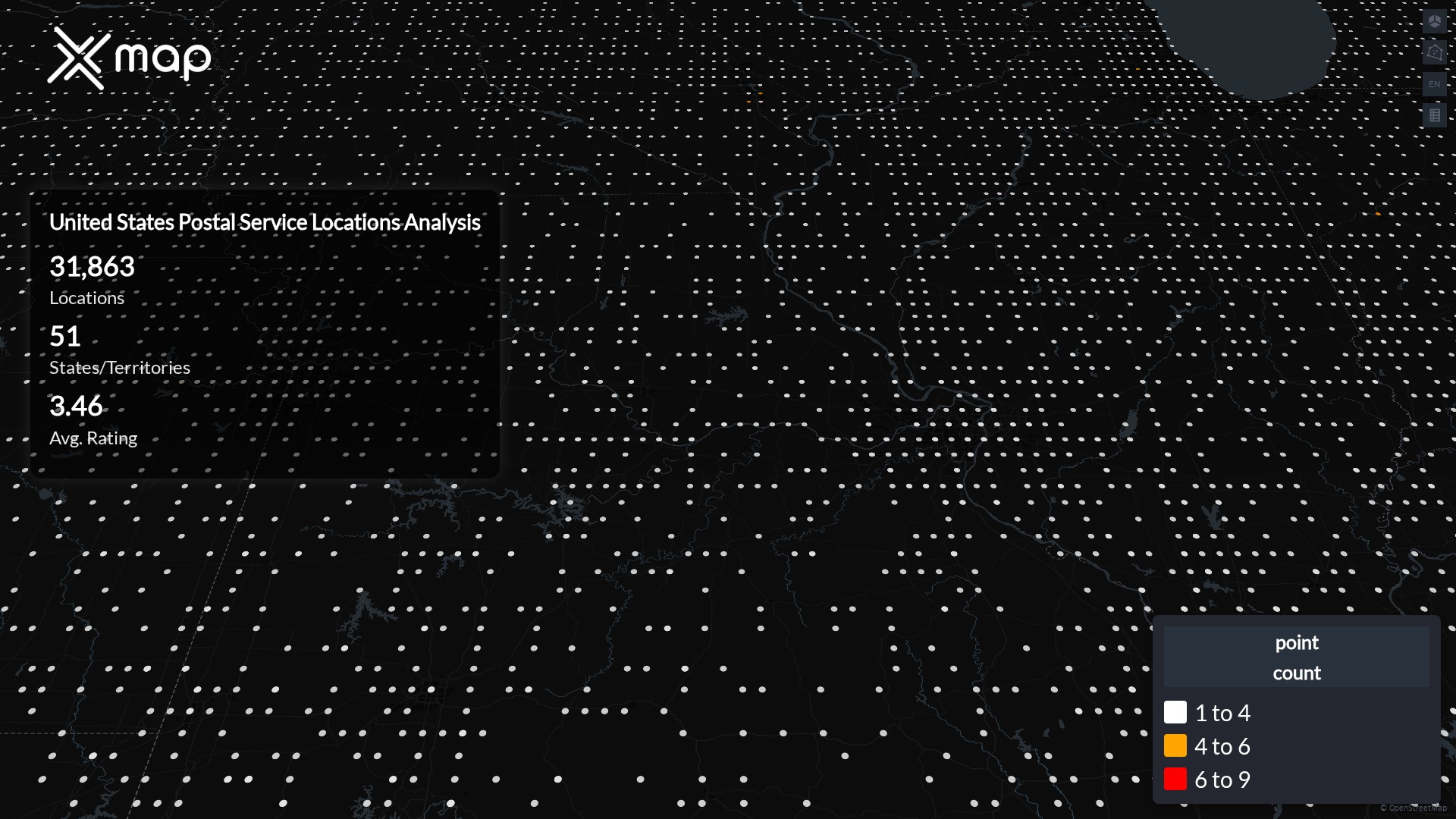 United States Postal Service POI data enables clear measurement of footprint and demand. Analysts can rank states and cities by location count, compare coverage on a per-capita basis, and use traffic scores and review volumes to spot high-performing markets and under-served pockets. The result is an objective view of saturation, growth opportunities, and performance outliers.