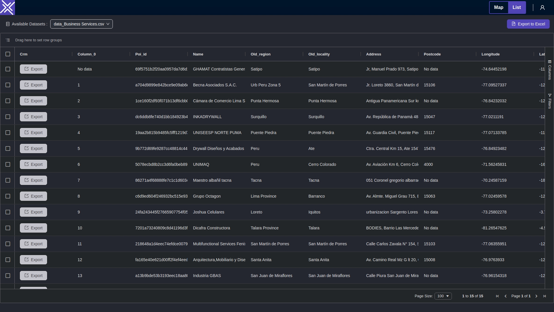 With over 29,977+ Business Services locations across 26 regions and 186 districts in Peru. The highest number of Business Services locations are in Lima Province and Lima with 15057 locations and 15057 locations, respectively. Find the best places for Business services with our updated database.